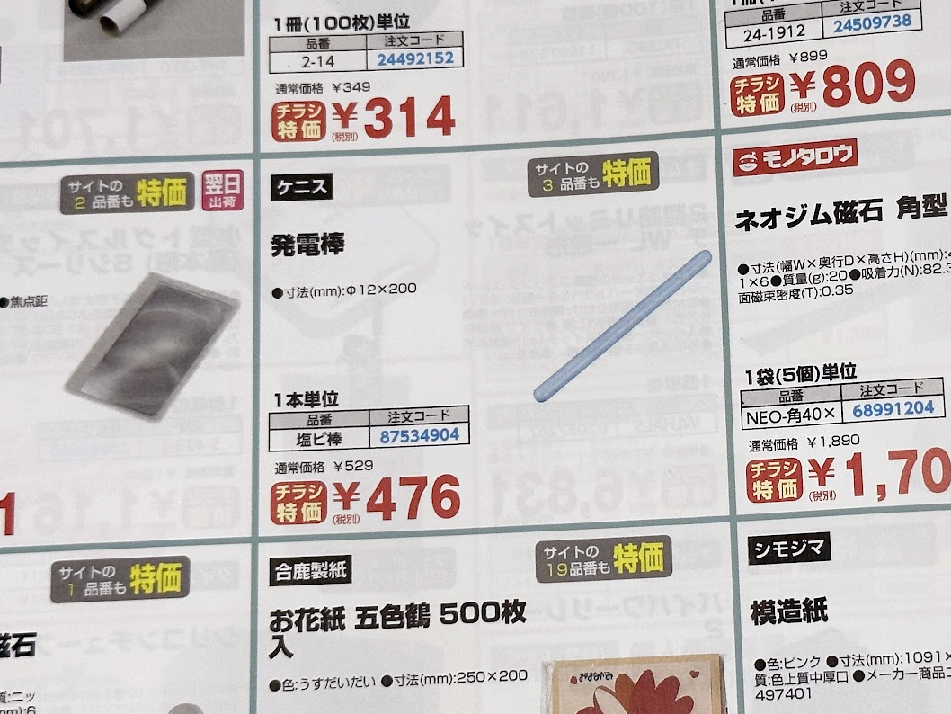 モノタロウからのDMで塩ビ管のジョイントやクリスタルパック(袋)が紹介されていた。