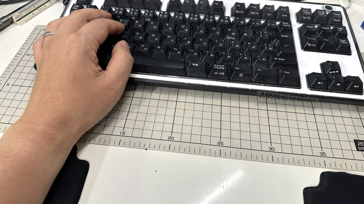 キーボードの手前にアームレストを置いている。Amazonで一番安いやつを買った。
